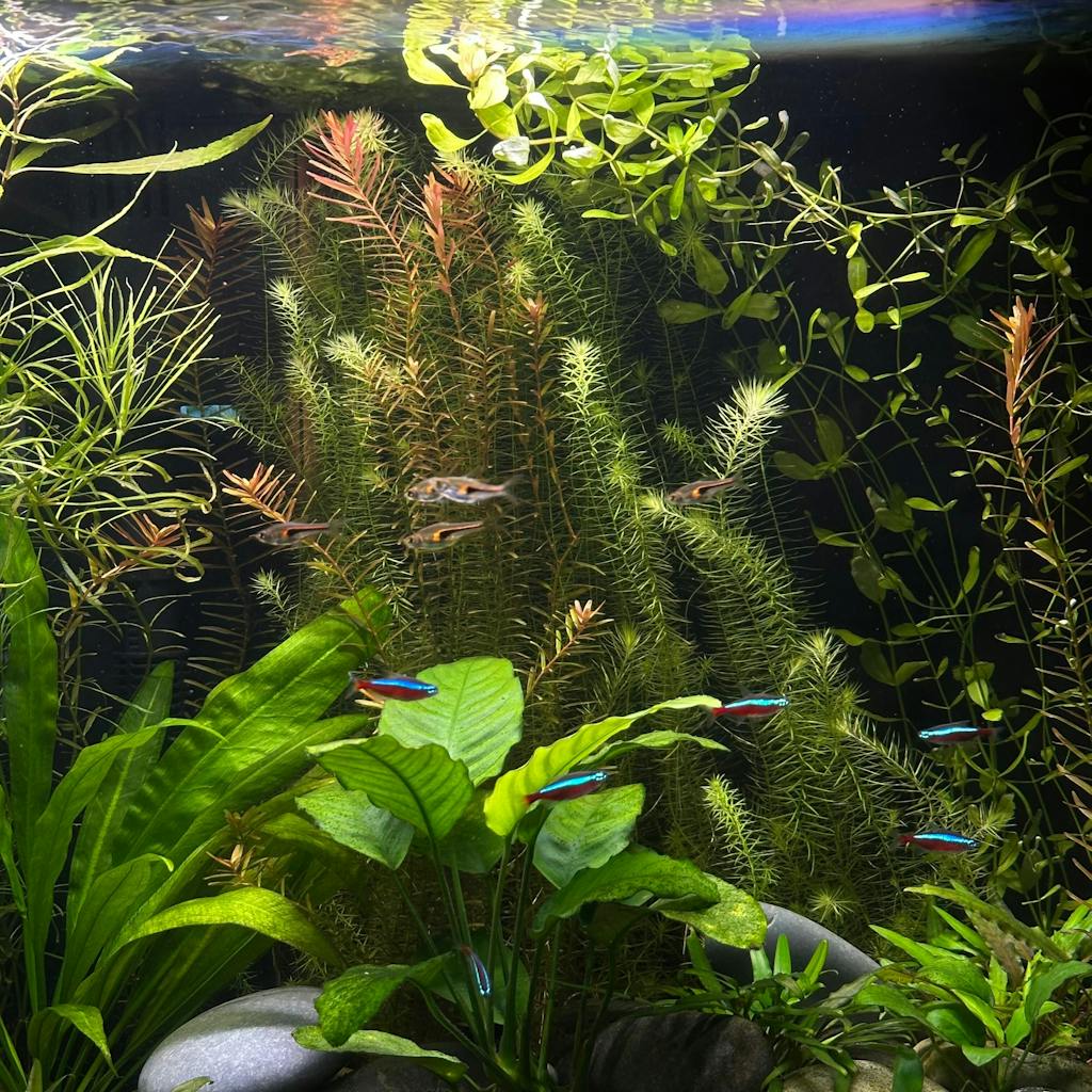 Mayca fluviatilis is a soft, bushy stem plant with thin leaves that are a light green in color, and its fine texture contrasts nicely against larger-leaved plants. Because of its unique, moss-like appearance, it is commonly referred to as the "stream bogmoss." This easy-to-grow plant does well in medium lighting or higher. Once established, it will grow quickly and provide a lush hiding spot for fish and shrimp.