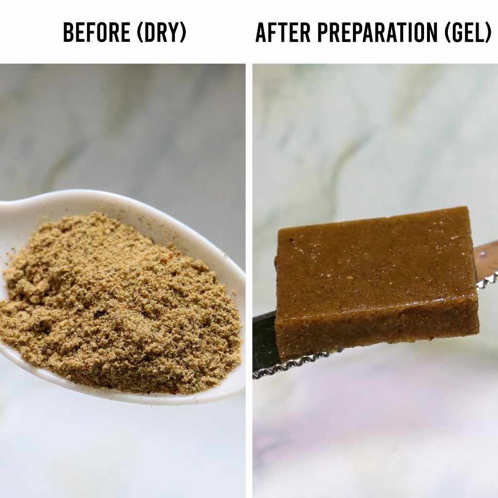 Bring water to a boil on stove, in microwave or kettle. Pour boiling water into a bowl and immediately stir in powder (1 part powder to 2-3 parts water). Let cool or immediately pour into mold. Gel will set at room temperature. Cut into pieces or make into a slow release Jerky. Once made, gel should be treated as fresh food and can be sealed and stored in refrigerator for up to two weeks, or freezer for up to six months.