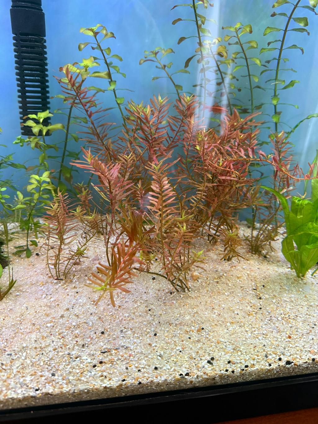 Rotala h'ra is a popular stem plant because of its gorgeous, sunset hues of orange, pink, and red under high lighting. Plus, its feathery, thin leaves provide an interesting texture to the midground or background of the tank. Give it plenty of light, nutrients, and CO2, and it will reward you with vibrant coloration and creeping growth via side shoots.