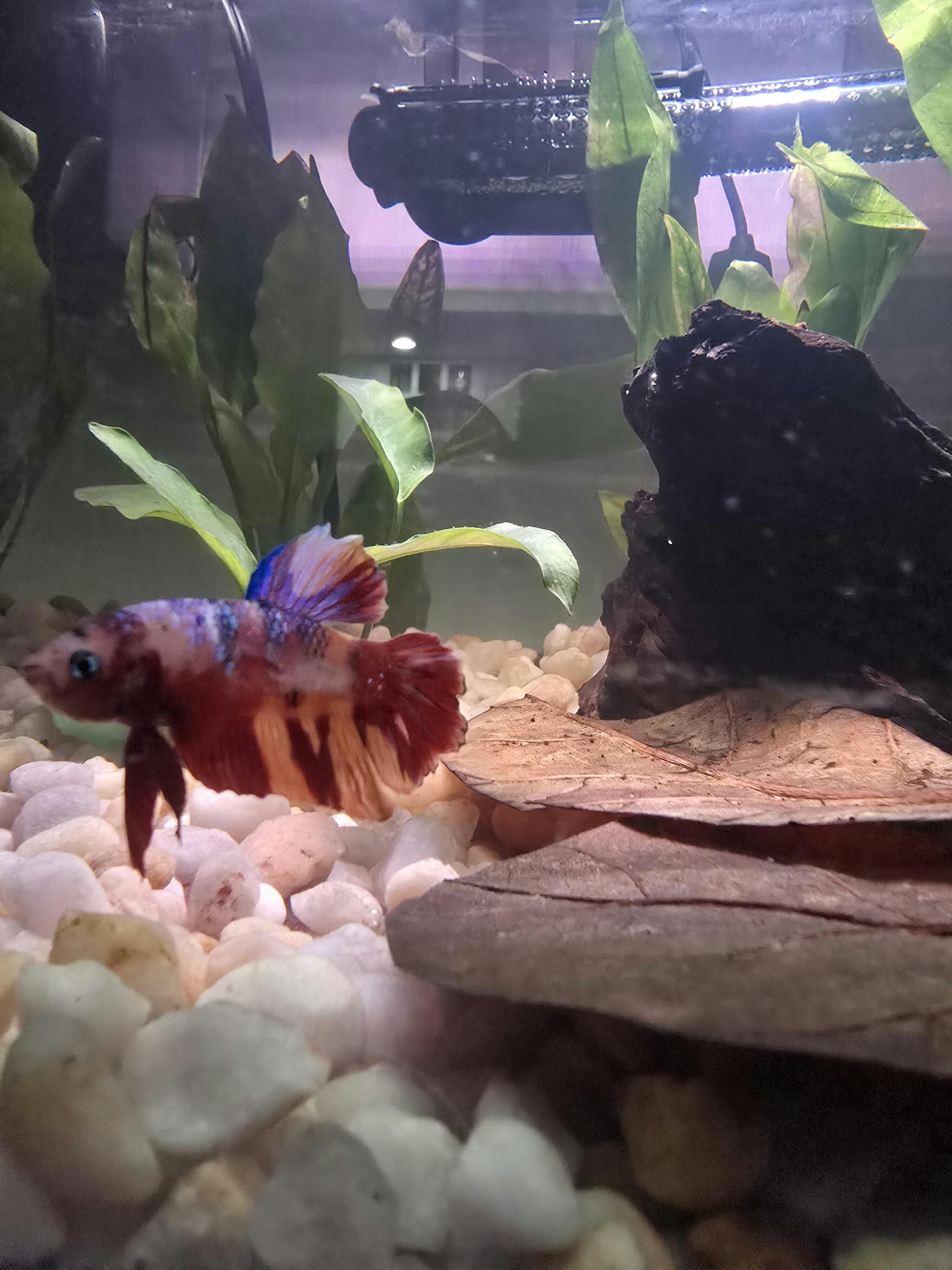 The black color looks great in the tank, has an interesting amber sheen to it under the LED lights, and my Betta enjoys resting on it sometimes.