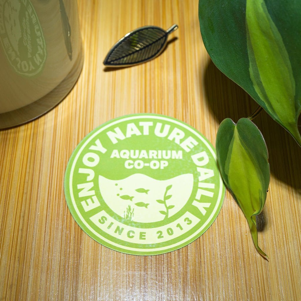 This fun sticker will add a touch of class to anything you place it on. It features our favorite phrase, 'Enjoy Nature Daily' on a green badge with Aquarium Co-Op in the center. Wherever you place it, it will be a great reminder to spend time with your aquariums, fish or your favorite place outdoors.