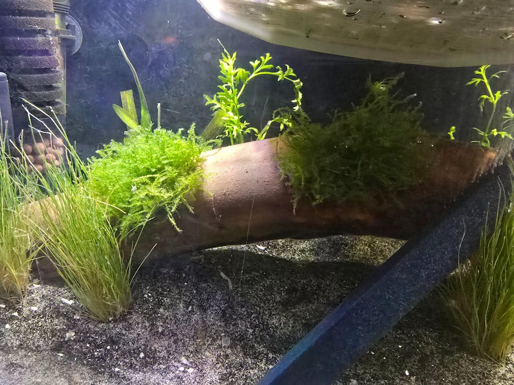 A moss specialty from Brazil, 1-3 cm tall, called "Christmas tree moss'', because of its side branch structure which distinguishes it from ordinary Vesicularia dubyana and looks like fir tree branches. It is more demanding than ordinary Java moss and grows more slowly. It attaches readily to roots and stones, and as it spreads in the water it needs pruning to keep its shape attractive.